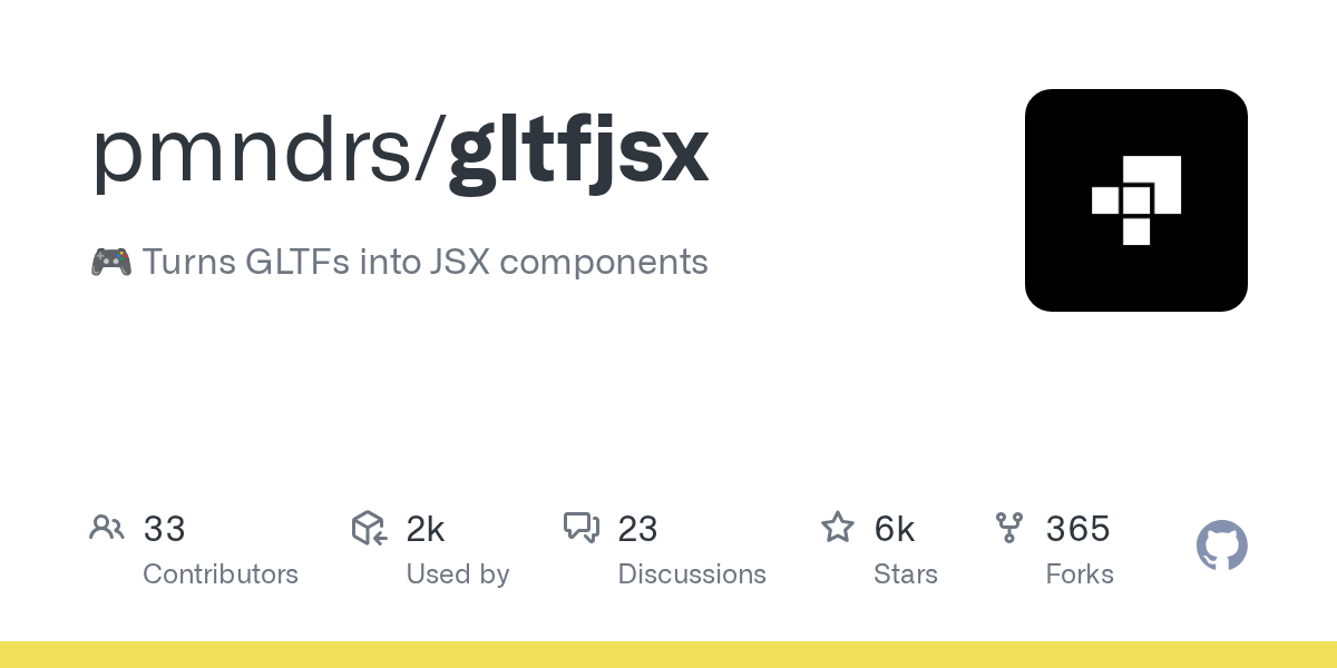 gltfjsx 是将 GLTF/GLB 模型转成 JSX 组件的工具。